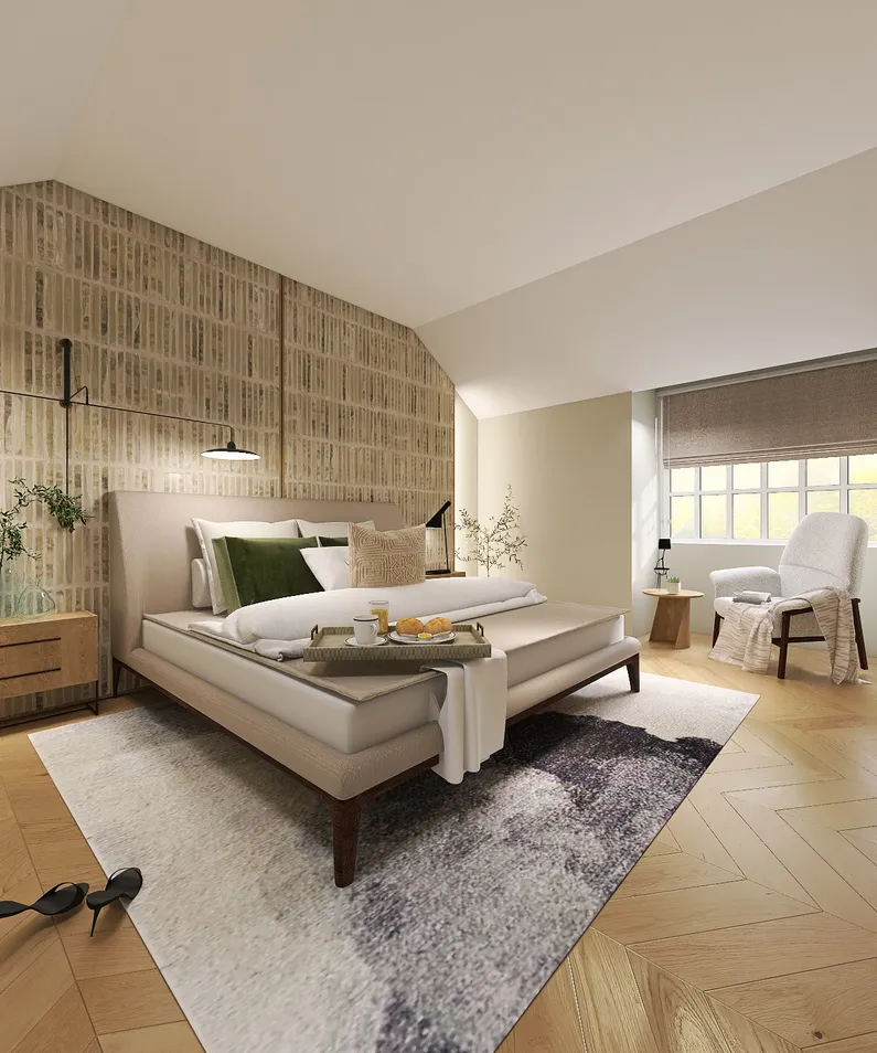Neutral tranquility was the mood I was trying to achieve. I had a trouble creating slanted ceiling but eventually I worked it out by using a gable roof and false ceiling. I still need to perfect the finish though. It needs filling the gaps between the roof and windows. Once I figure it out I’ll share it.