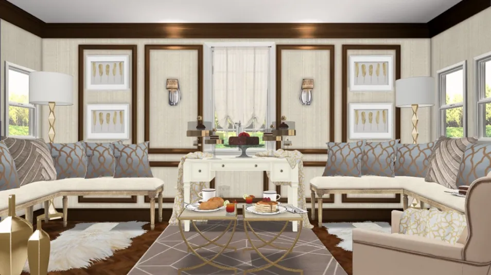 Gold and bronze! Sounds like a 007 movie...nope it’s the colors of this room. A break area or relax room to take your brunch or afternoon tea with your friends.