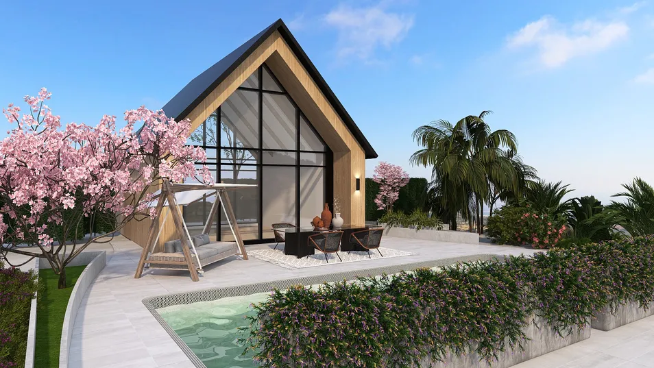 On a hilltop with surrounding trees, is a cozy small home that offers a tranquil retreat to revel in nature's beauty while enjoying a refreshing dip in the pool. This well-equipped house comprises a comfy bedroom (also functioning as a living room), a fully-equipped kitchen, a modern bathroom, and a spacious dining area to cater to all your needs. Enjoy..