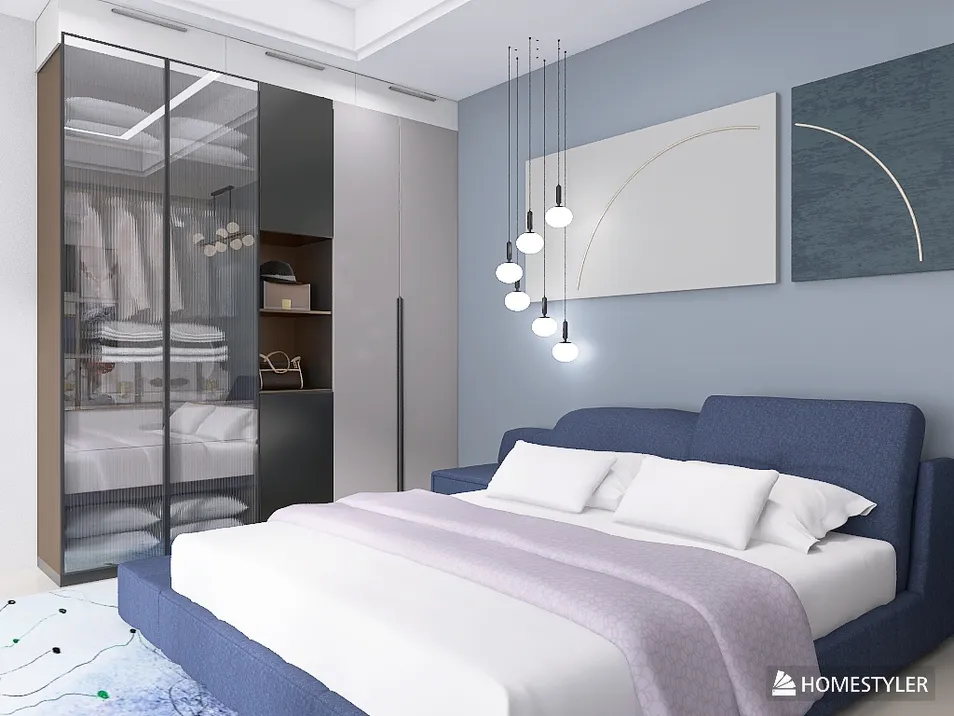 In a Santorini-inspired retreat, the room breathes calm. Soft blues and whites intertwine, while shadows dance on the walls. An unmade bed whispers secrets of the night, and a distant jazz tune lingers in the air, as if time has paused in this coastal dream.