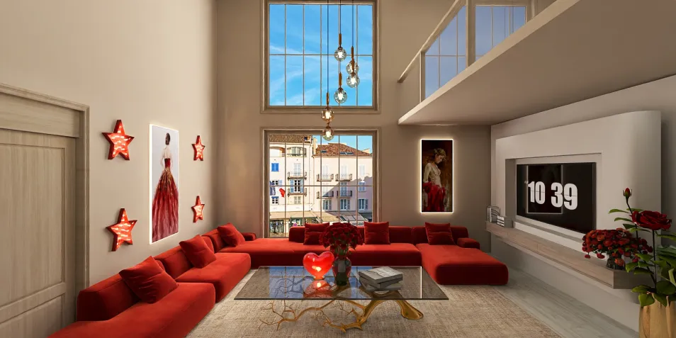 In this chic space, vibrant red accents dance with golden tones, creating a playful yet sophisticated atmosphere. The layered beds invite dreams of starlit adventures, while the open design whispers of freedom. A perfect blend of comfort and style, where every corner tells a story.
