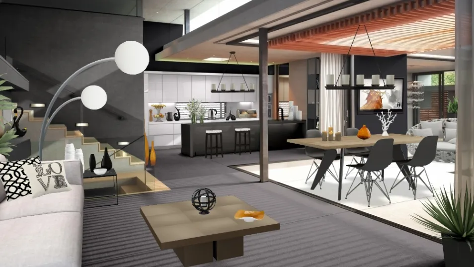 "Modern house" is a brand new house in modern style, well what colors better than white, black and gray? Although I thought that colored details were not bad and I decided to use orange. It is very simple and well-divided, ideal to stay a little alone with your own ideas.