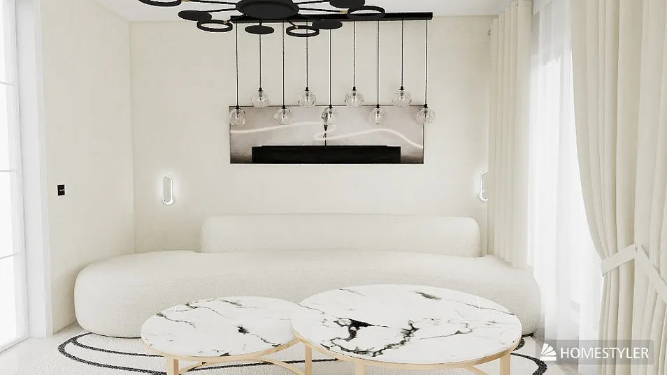 The design of the modern living room is made in light shades, a light cabinet and TV, a sofa, a carpet in black and white shades and an interestingly made table give this place a cozy and comfortable, and the picture that hangs in the background gives style and elegance.... I as a novice designer very much hope that there will be people who will like my design.....and other works... Thank you for your attention! ❤☺