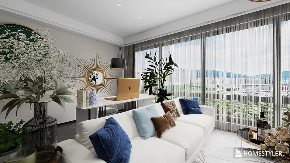 I have created a new, cozy space for the soul. The design is made in quiet, but bright colors. The space is fully suitable for a comfortable life, there is everything you need for life and work. Large stained glass windows complement the space and at the same time provide the apartment with constant sunlight, which has a great effect on people's health and their mood. I hope you will like this space. With love, Sofiya!