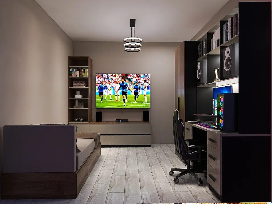 This room blends functionality with simplicity. The soft tones of the walls contrast beautifully with the sleek furniture, creating a calm atmosphere. A spacious desk invites productivity, while the cozy bed offers a haven for relaxation. Perfect for balancing work and leisure.