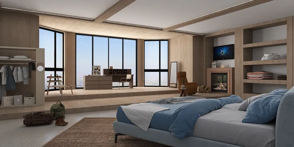 In this spacious sanctuary, light dances through expansive windows, casting a tranquil glow on minimalist decor. Plush bedding whispers comfort, while the warm wood tones invite a sense of home. A subtle clutter hints at stories untold, creating a perfect blend of peace and possibility.