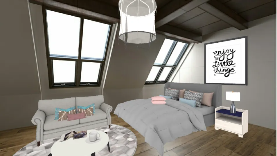 Grey, white and some color is in this design. A normal bedroom is what it looks but is morandi.😊