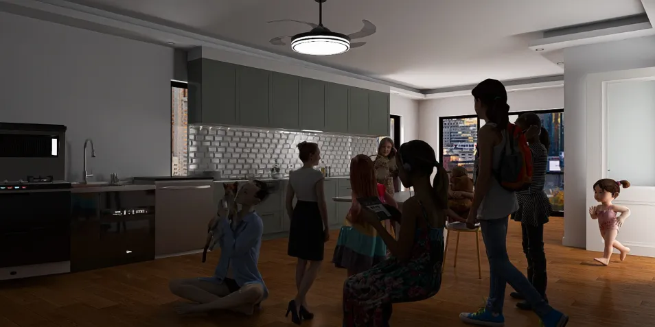 All the kids are disappointed is only one kid has a seat in that kid that has a seat is on her tablet