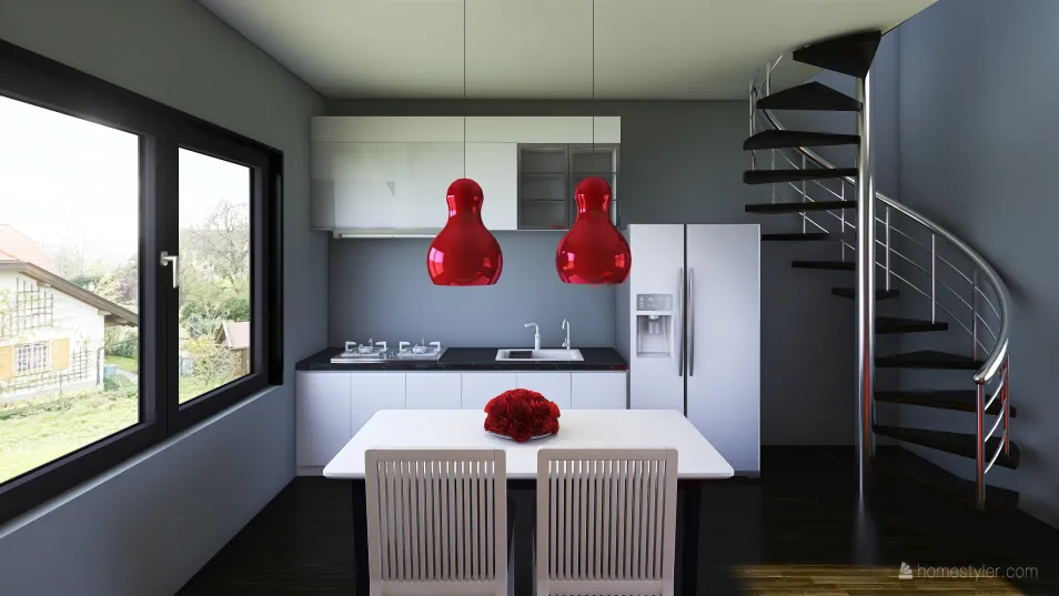 The theme for this was very modern with a hint of red. The red really pops out and adds a dramatic element to the design. 1st Floor: Kitchen, Living Space Loft: Bedroom