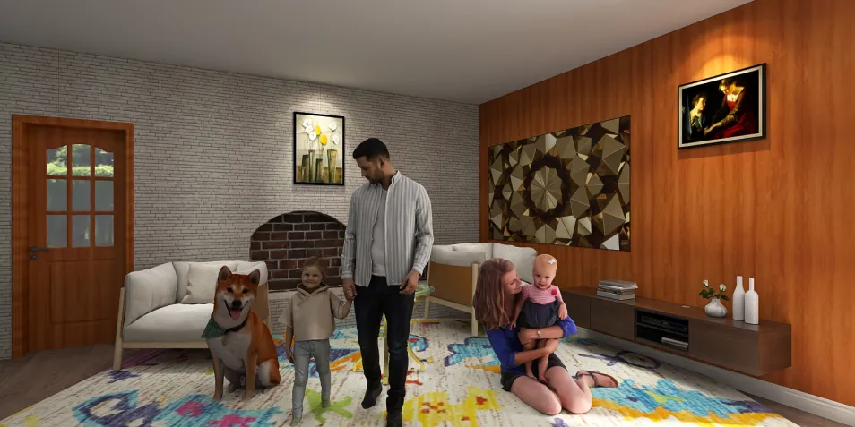 No aconchego do lar, a família se entrelaça como fios de um tapete vibrante. O cão observa, silencioso, enquanto risos flutuam como ecos de cidades invisíveis. Cada objeto, uma história, cada parede, um sussurro do afeto moldado pelo tempo.
