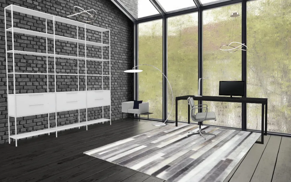 Una oficina para tener todo en su orden con un ventanal enfrente del escritorio para pensar limpiamente en tu trabajo
