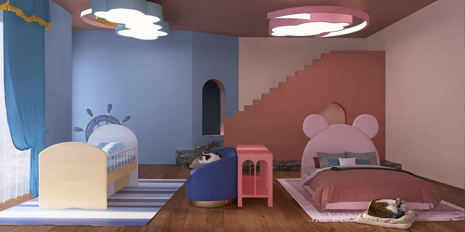 This is a room we designed for twins, I know that I loved twins when I was a kid and absolutely adored there rooms. That is why I made this!