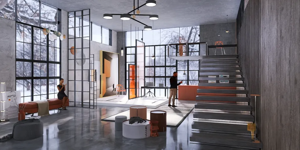working between partitions and levels Use of single sofas The existence of more partitions Creating a space with proper ventilation and more