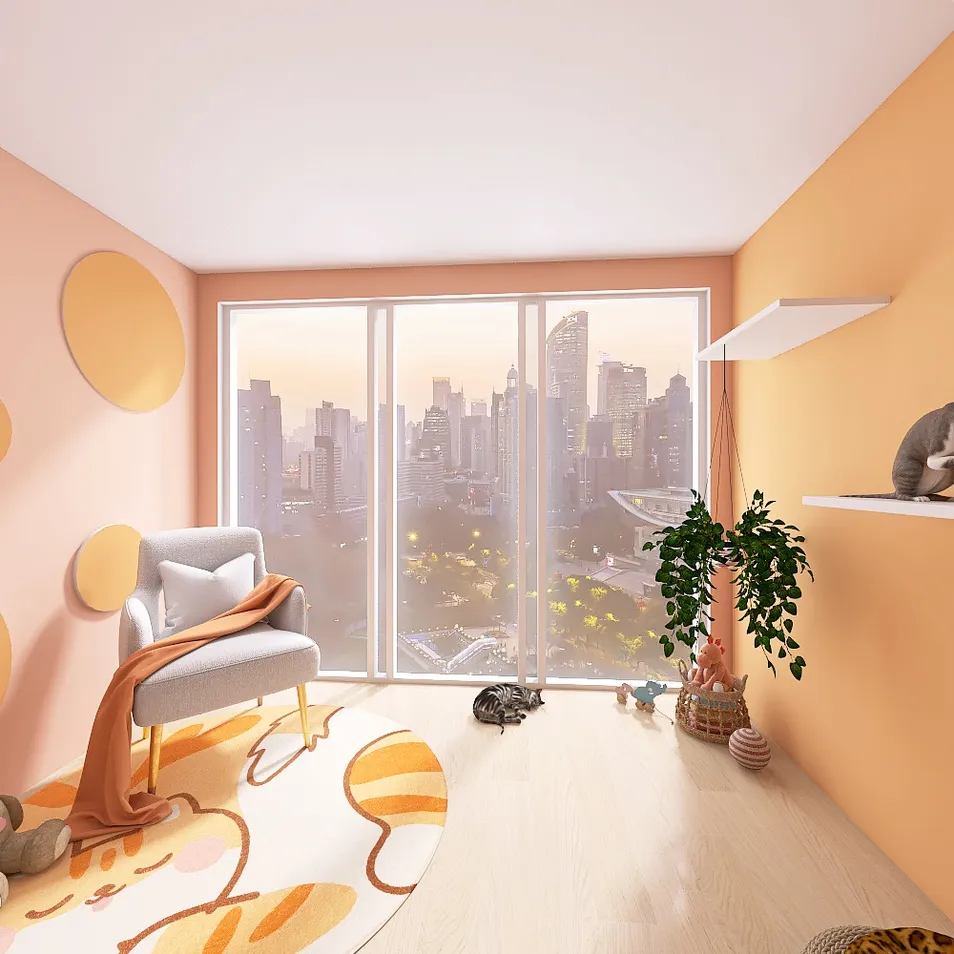 I made this room inspired by the cat rug and the peach fuzz challenge, but also one of my closest friends who loves cats.