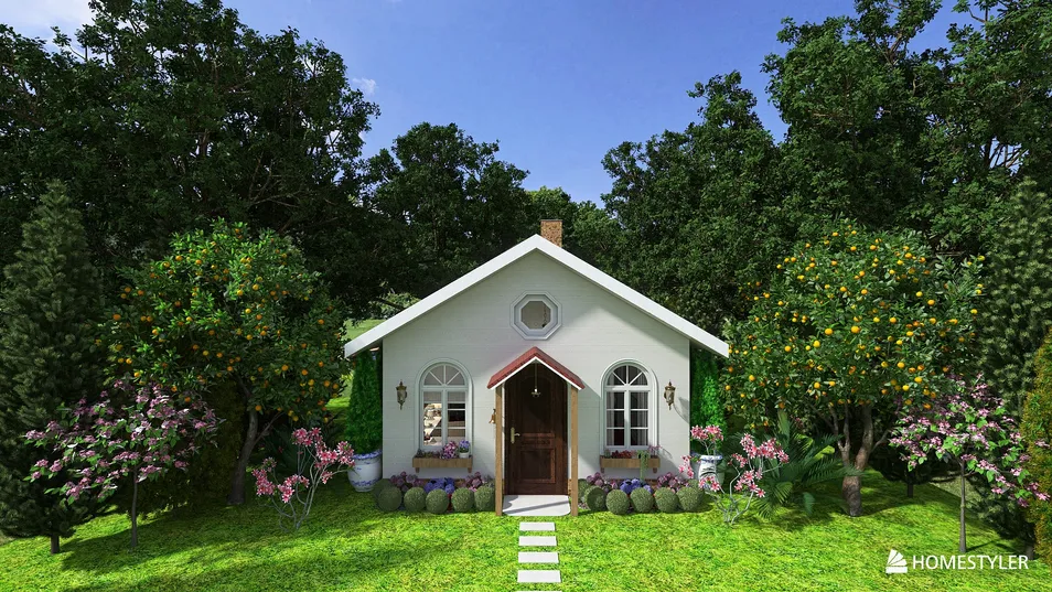 about the project: A small 30 m² cottage that offers comfort and tranquility, with its traditional decor, with wooden frames on the walls, both inside and outside the house, which gives a feeling of warmth and comfort. The house pays homage to nature, preserving the greenery and flowers around it. area: 30m² location: Asheville, North Carolina - USA - design by Ana
