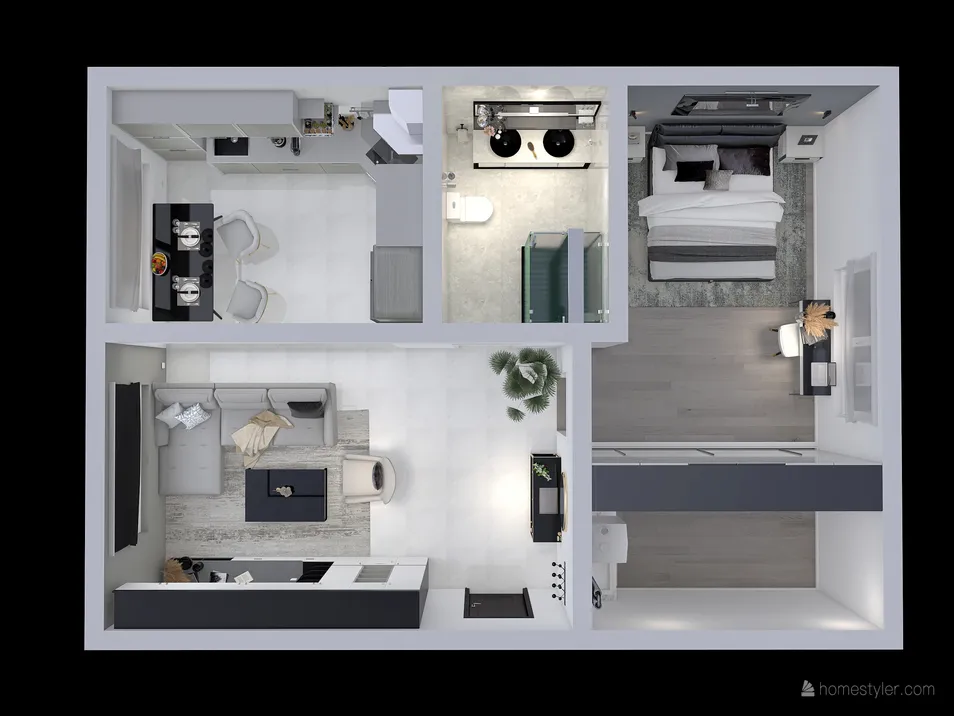 Piso de 70m2 con un dormitorio y un baño. Cuenta con un salón y una cocina comedor con opción de comunicar ambos espacios. Este piso, además cuenta con una despensa/ trastero.