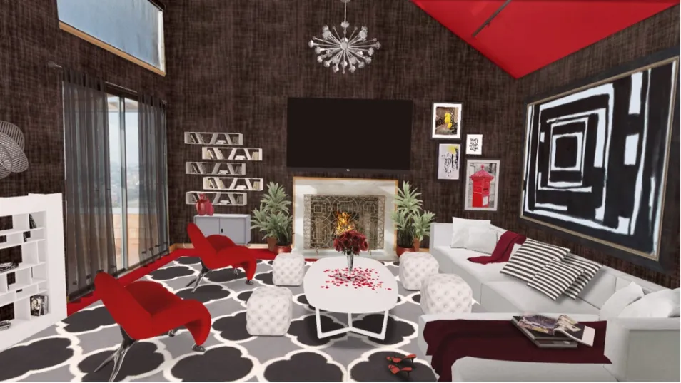 I decided to play a little bit with Patterns, which I often showed through the black, white, and grey accessories. Although this might hurt another persons brain, I find it quite pleasing. The patterned carpet really makes the room look fuller, hence why my furnitures are plain in colour... the contrast balances it all out.