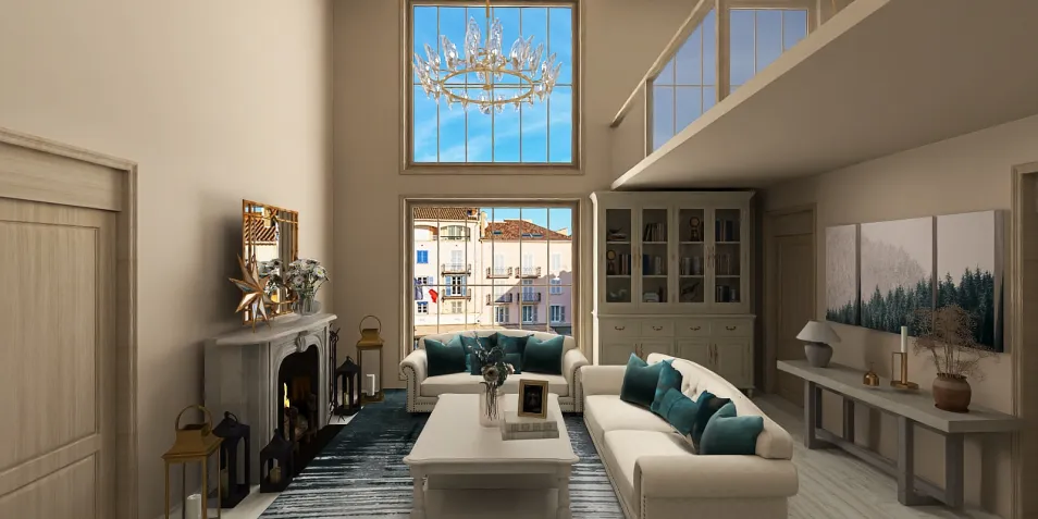 Bathe in the soft glow of a crystal chandelier, where plush sofas cradle whispered secrets. A marble fireplace stands sentinel, while panoramic windows frame a vibrant world beyond—each detail a testament to beauty, yet a reminder that perfection is but a fleeting illusion.