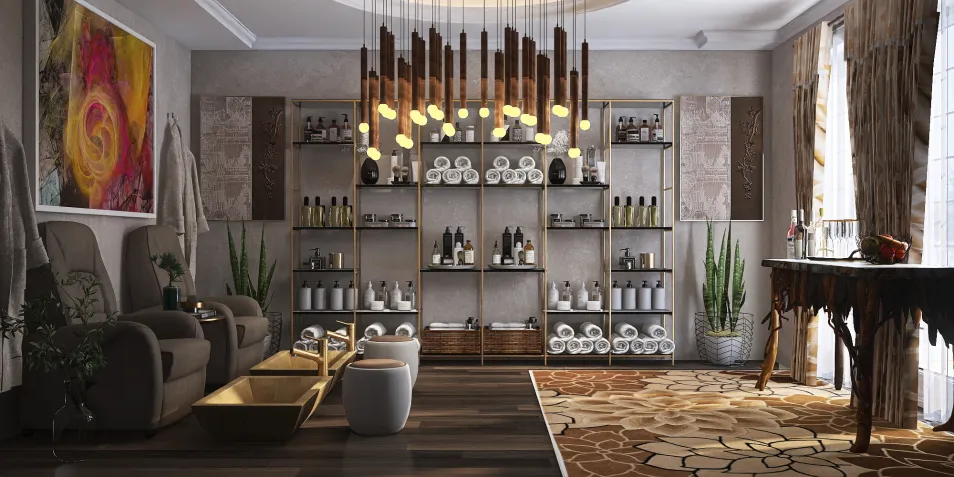 A relaxing spa area perfect after a long day of exercising. Equipped with two pedicure bowls, many cleansers, some wine and fruit