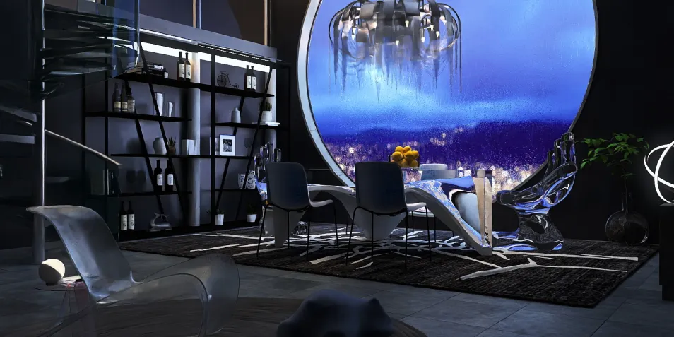 Cool tones bathe through acrylic and glass pieces that make this a truly reflective space