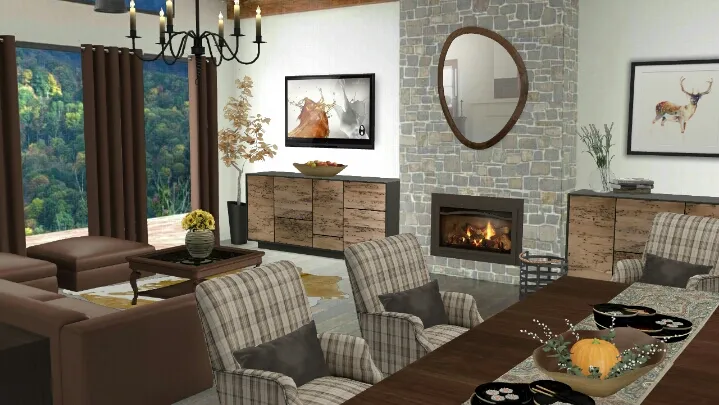 Simple yet sophisticated Thanksgiving dinner in a cozy contemporary rustic setting.