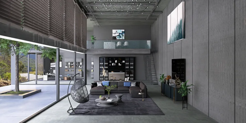 Sala que aprovecha la luz natural y los tonos oscuros para crear una atmósfera muy relajante y moderna