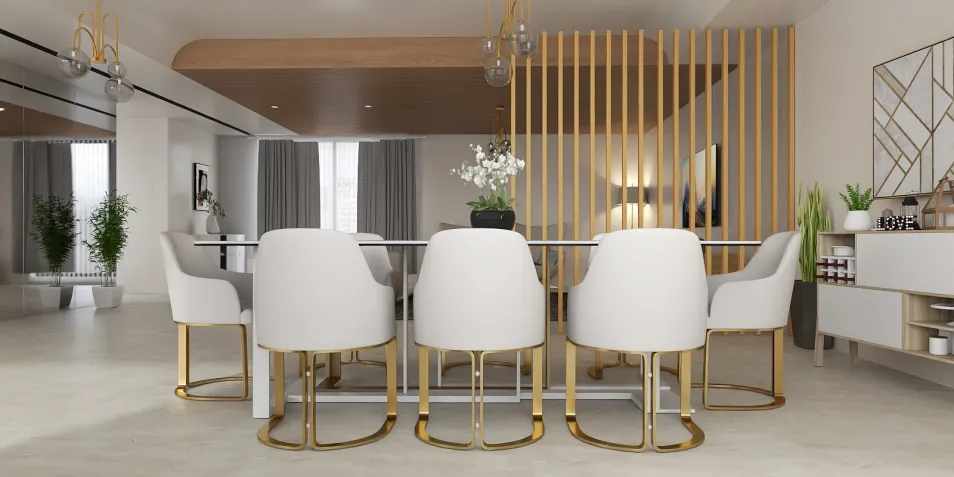 A imagem retrada uma aconchegante sala de estar com tons claros valorizando assim o ambiente. Em conjunto com a sala de estar se encontra uma sala de jantar ampla com espaço para família inteira! A proposta desse projeto é proporcionar conforto e espaço.