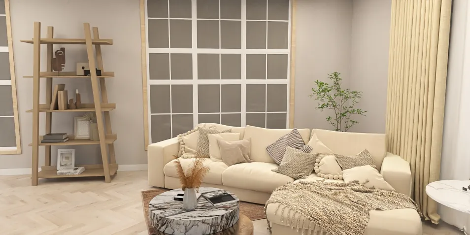 W sercu tego przestronnego wnętrza, gdzie miękkie odcienie beżu spotykają się z naturalnym drewnem, kryje się harmonia. Każdy kąt zaprasza do relaksu, a elegancka prostota mebli tworzy atmosferę spokoju i inspiracji.