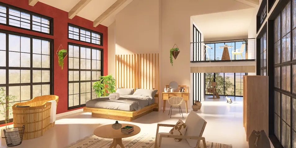 I love the pop of this burnt orange it brings a bit of colour to this calming, loght bedroom.