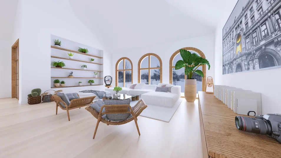 I created this chalet a while ago with a minimalist touch , it brings such a calm vibe. My own photography is hanging on the walls, making it feel extra personal. Perfect for a holiday getaway… or maybe even for full-time living.