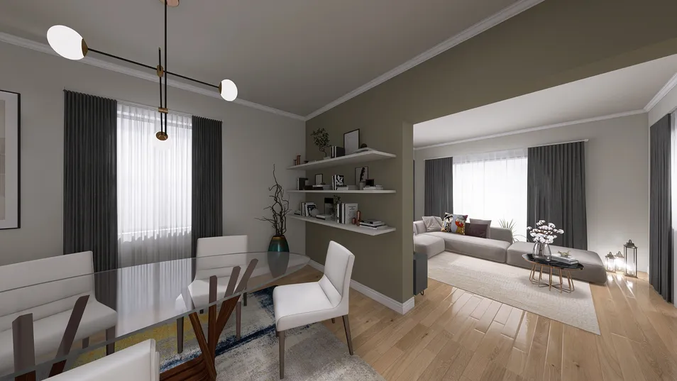 In questo appartamento elegante, i colori chiari predominano, creando un ambiente contemporaneo e luminoso. La cucina minimalista si integra perfettamente con il soggiorno, dove dettagli raffinati e linee pulite si uniscono in un design armonioso. Un angolo di tranquillità nel cuore della modernità.