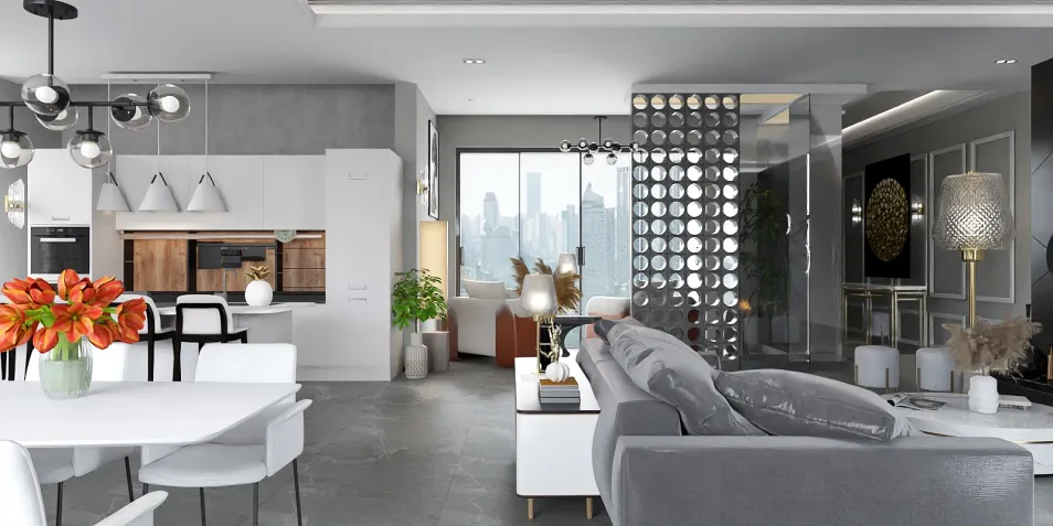 In un ambiente modulare, ogni angolo è una promessa di metamorfosi. Le superfici trasparenti riflettono un cielo di città invisibili, mentre elementi sospesi danzano nell'aria. Qui, il tempo è un'illusione, e le stanze si ricompongono come pezzi di un sogno incompiuto.