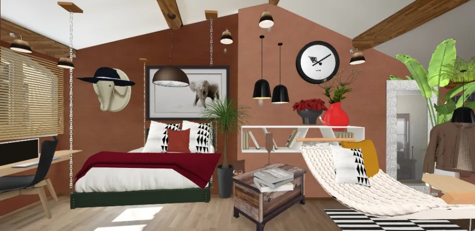 relax with casual playful studio bedroom with floating bed and a hammock.😎