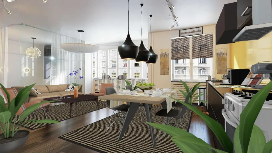 Modern flat with a spaceous living room , dinning area and a minimal kitchen integrated. The design follows the main modern lines of contemporany architecture and offers an amazing solution for a unique urban atmosphere.
