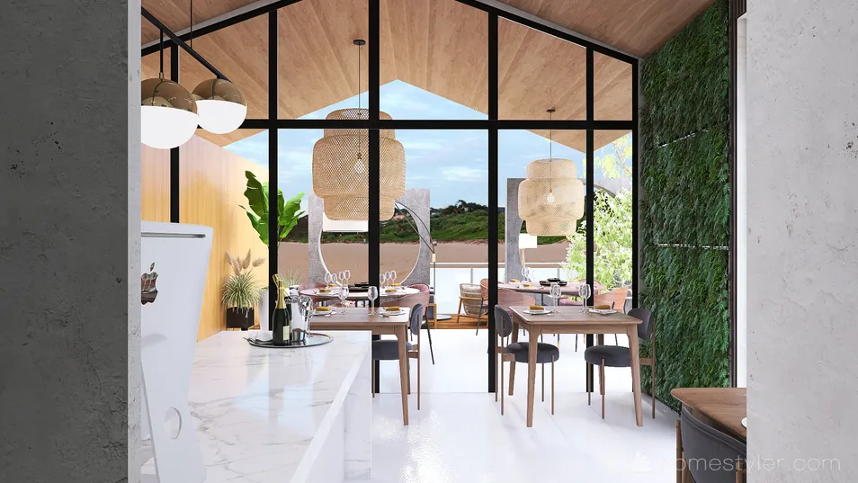 Sushi beach bar is a combination of two best worlds! Beach with Japanese food, which we might want more. Is composed of the interior and exterior room with textures of wood, cement, plants, lighting notes making cozy