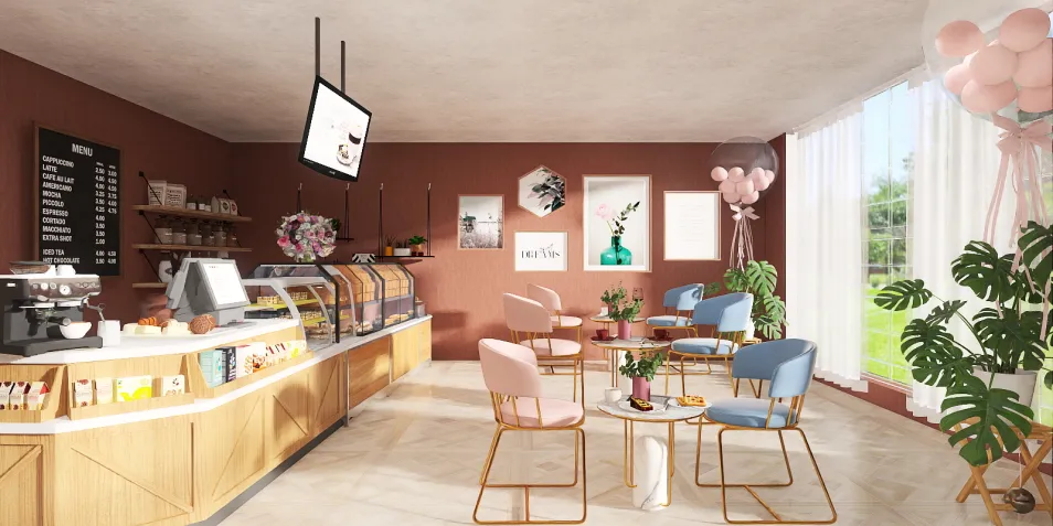 It's nice to sit with friends in this cafe. Give me your opinion on the colors