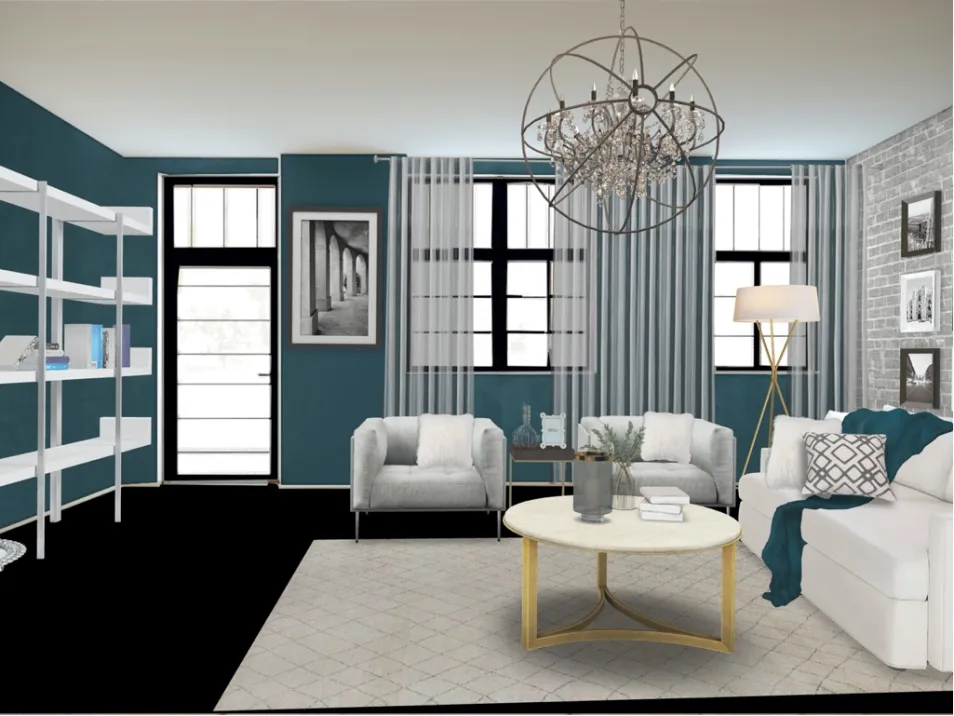 Chic city style meets suburban living. A neutral color palette with glamorous accessories makes an inviting space for both him and her! With grays on the floor and teal towards the ceiling, it’s one that is quite appealing!