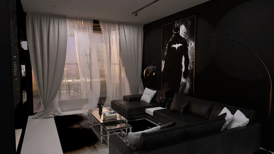 Who said a girl can't be a super Batman fan? Welcome to this modern apartment of a very young career girl, dedicated to the Dark Knight. Everything is ready for a wonderful sunset over Gotham City.