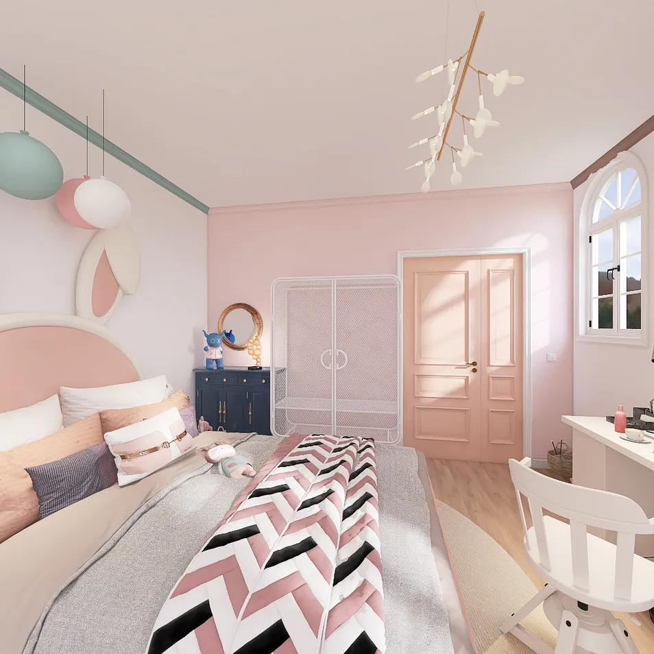 This is a fairy, light and pink room shared between sisters aged 7 and 12