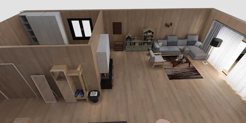 In this airy sanctuary, wood grain whispers stories of simplicity. The soft gray couch cradles echoes of laughter, while sunlight dances on the polished floor. Each piece, a mindful choice, invites serenity, stealing away the chaos of the outside world.