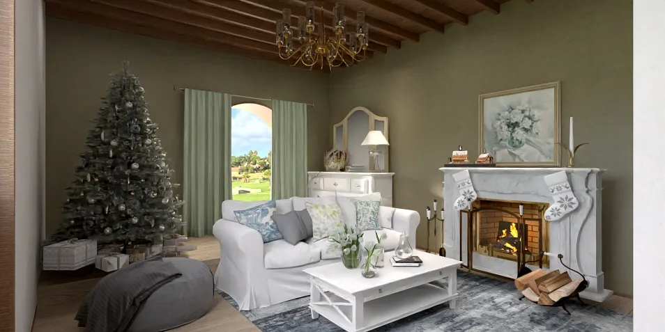 In this room, where shadows whisper tales of forgotten warmth, the fireplace breathes softly, cradling the weight of winter's sigh. A tree, draped in silver dreams, stands sentinel, while the walls pulse with the echoes of laughter, each moment a fragment of an invisible city.