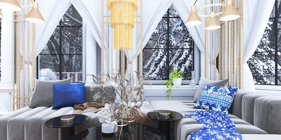 In a space draped in soft hues of gray and blue, where shadows dance through frosted glass, a cat curls up on a plush couch. The air carries the faint scent of whiskey, while jazz notes linger like unspoken thoughts, echoing the solitude of winter's embrace.