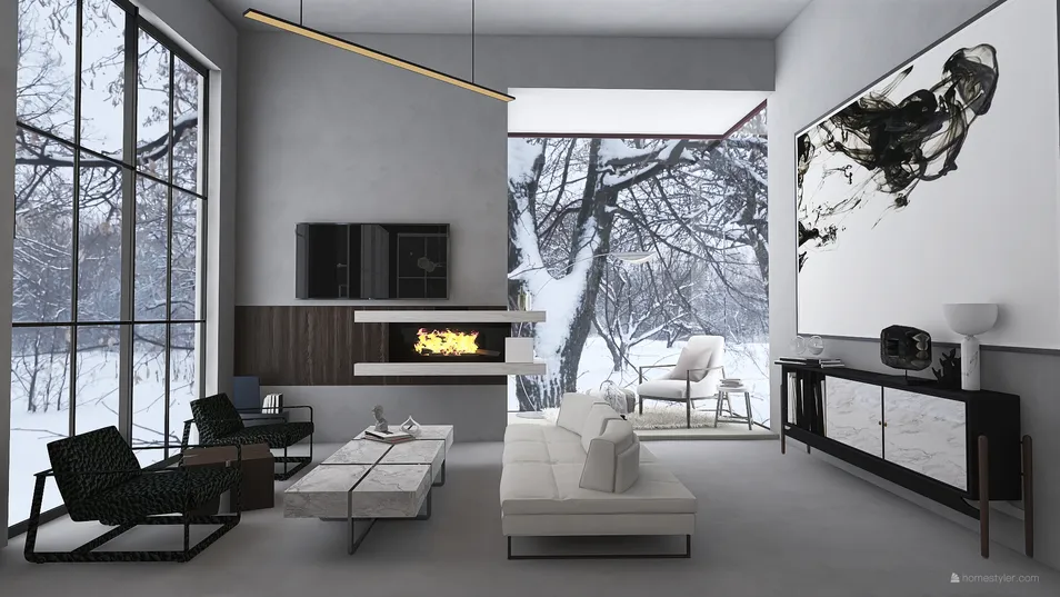 This design is inspired by The TIING architecture resorts of Bali Indonesia. An open space. A bedroom opens to the bathroom further opened to a pool. 360-degree view from each corner. The tones used are greys and beige along with raw cement and natural wood!
