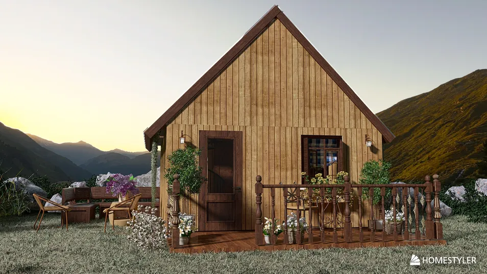 Small cozy cabin with glass cellings. So when you're inside it still feels like you're inside nature.
