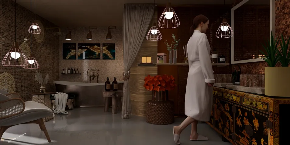 A serene escape blending Asian-inspired elegance with natural textures and warm lighting. The fusion of wood, stone, and golden accents creates a soothing atmosphere that invites peace, balance, and renewal. Every detail reflects harmony and mindful luxury — a true retreat for the senses. ✨