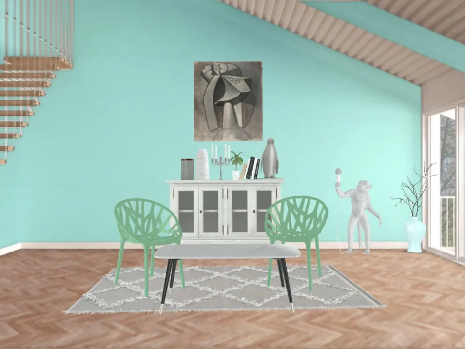 I decided to do a color them but I could not think of anything so I decide to go with a wacky and beautiful color and that’s why I did turquoise for this room