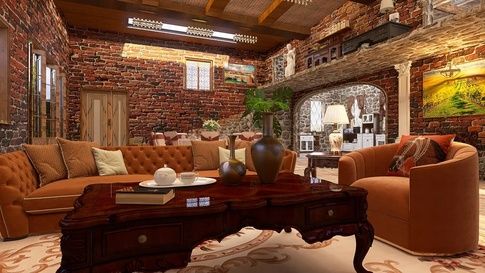 Large rustic-style room typical of Tuscany (Italy), Every furniture, every material, every decoration recall the Tuscan style. I live in Florence, Tuscany, so I believe that no one better than me can describe everything I see every day.