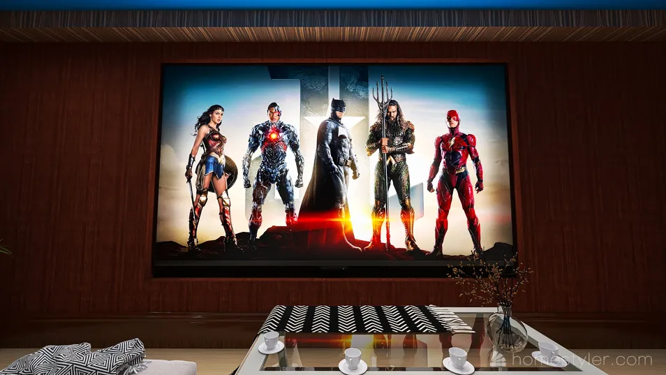 The Entertainment Bonus Room I have created acts as both a home theatre and a home arcade. As you walk into the room, you are met with three comfortable sofa chairs facing a flat-screen TV. Below the sofa chairs, you will find a sectional sofa, accompanied by a coffee table to place drinks. Not in the mood for watching television? No problem; behind the theatre, you will find a mini home arcade. This area contains classic arcade machines, darts, a punching bag and an air hockey table. Additionally, there is a rack from which you can grab video games to play on the TV.