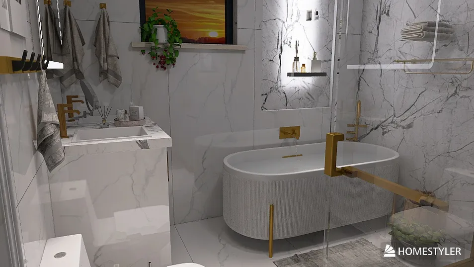 Num oásis de mármore e dourado, os amantes do dourado encontram um spa onde o luxo e requinte se entrelaçam. Cada gota de água é um convite ao relaxar, enquanto a luz suave acaricia a pele, como um sussurro de serenidade.