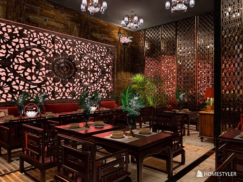 En este restaurante de Tailandia, la madera tallada y los sutiles reflejos dorados crean un ambiente envolvente. Las plantas verdes se entrelazan con la decoración, como si susurraran secretos de un pasado glorioso, mientras el aroma de especias flota en el aire, invitando a soñar.